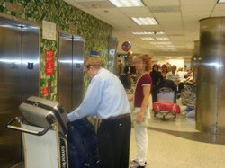 Now, Mr. Rekers seems to be in full damage control mode and has even posted a statement at the top of his own website, professorgeorge.com, that reads in part "Dr. Rekers found his recent travel assistant by interviewing different people who might be able to help, and did not even find out about his travel assistant’s Internet advertisements offering prostitution activity until after the trip was in progress. There was nothing inappropriate with this relationship." Uh, yeah. Now...what now?Look, if you're going to be a closeted homo, that's your deal. I don't care. Be in, be out, just be you and just happy. That's my motto. But if you're going to be in, please don't be disparaging to those who are out. And, for the love of God, if you're caught going on vacation with a Rentboy, please don't insult the intelligence of everyone having to hear about this story by coming up with a scenario in which he's only there to carry your freaking luggage. And please don't come up with this ridiculous story AFTER there is a picture of you which seems to show you handling your own luggage whilst your Rentboy, Lucien, stands there and waits for the elevator. Behold!